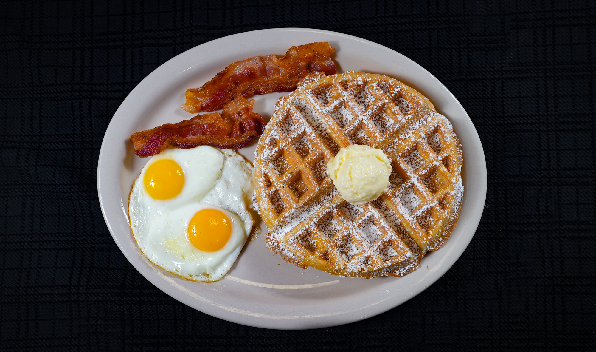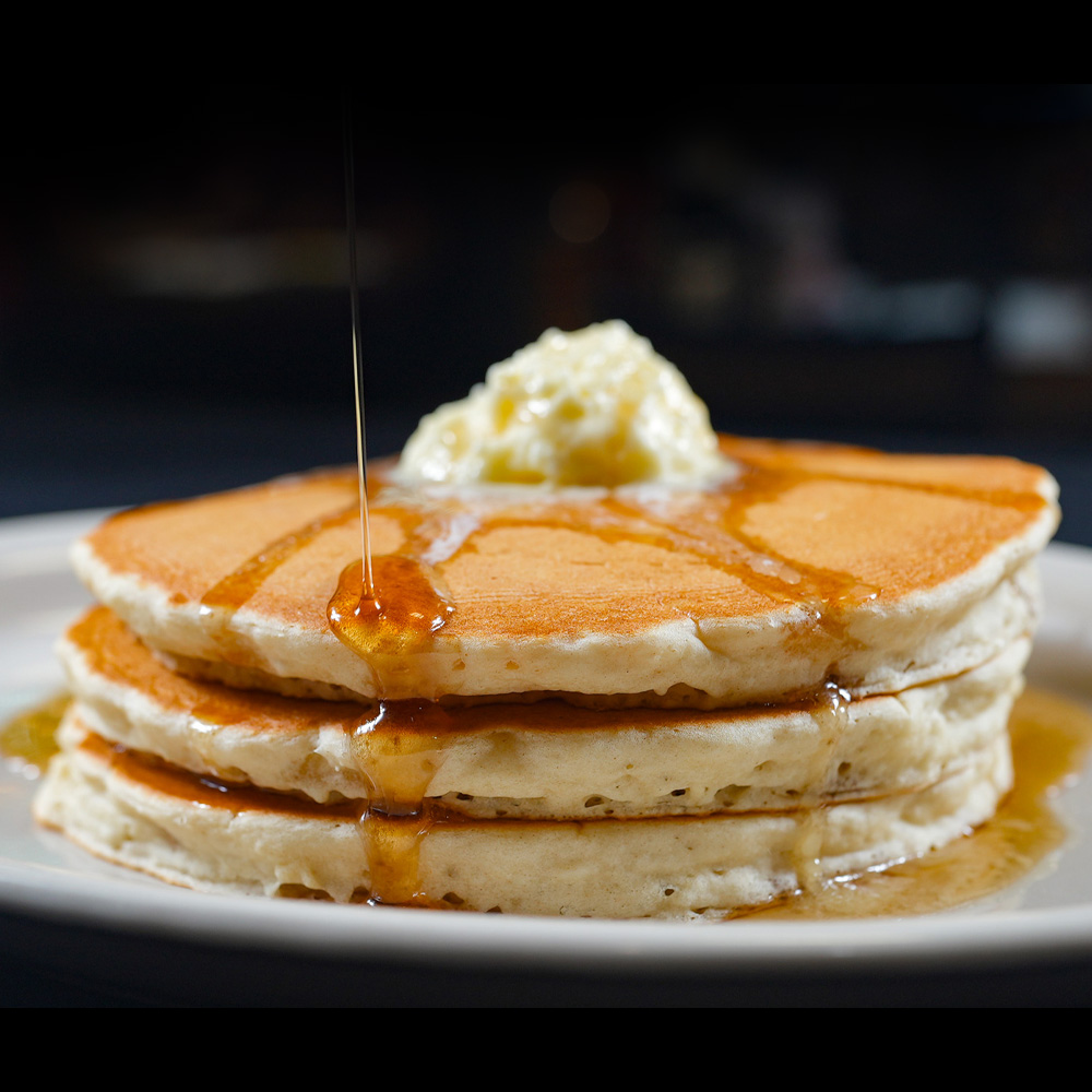 Stack of pancakes (3), two eggs, two bacon or two sausage links